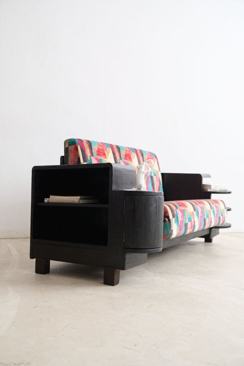 The Art Deco 3-seater sofa is a stunning piece that truly captures the elegance of the 1920s. The teak wood construction feels solid and durable, and the reupholstered fabric in vibrant prints adds a unique touch. While the size fits well in my living room, delivery arrangements took longer than expected. The hidden storage is a nice bonus, though slightly awkward to access. Overall, it’s a beautiful statement piece that brings character to any space. Just be prepared for the extra coordination needed for delivery.