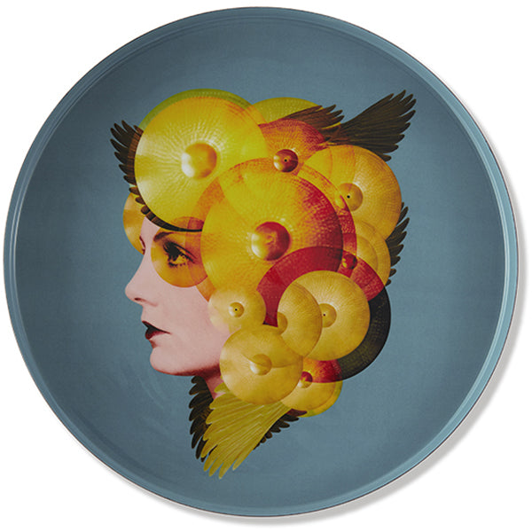 The Gangzai Cimbella Round Tray captures a moment of quiet reverie, a visual poem to the day’s reflections. Imagine the resonance of cymbals taking flight, their echoes swirling around her as her gaze drifts into the distance. Her thoughts, like those reverberating sounds, dance and shimmer through her mind. This decorative tray is a celebration of introspection, rendered with a touch of surreal elegance that invites you to pause and ponder.