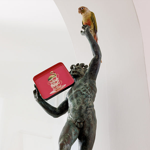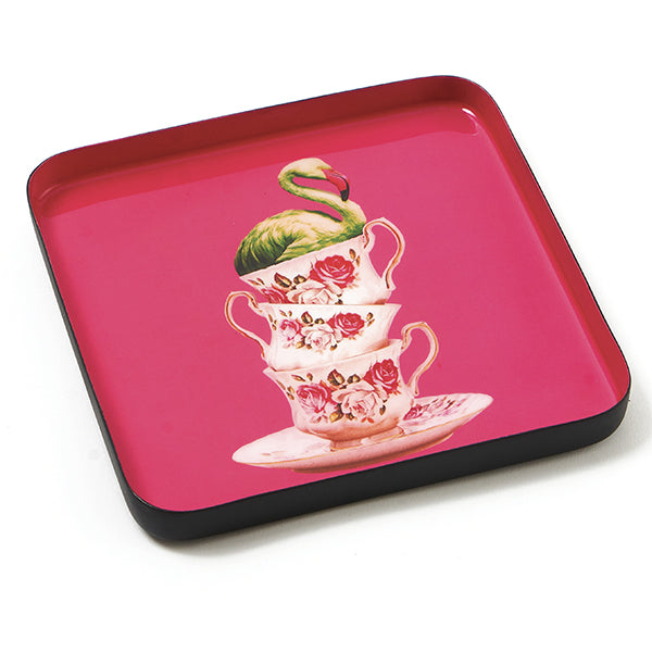Time for tea? The Gangzai Flamingtea Square Trinket Tray is a vibrant, whimsical confection that’s impossible to resist. Against a striking backdrop of hot pink, a stack of delicate, rose-patterned vintage teacups becomes the unexpected perch for a graceful flamingo. With its head poised, seemingly emerging from the topmost cup, this piece is a delightful, surreal blend of afternoon tea elegance and exotic avian charm. It’s a bold pop of colour and playful artistry, perfect for holding your tiny treasures or simply serving as a miniature masterpiece.
