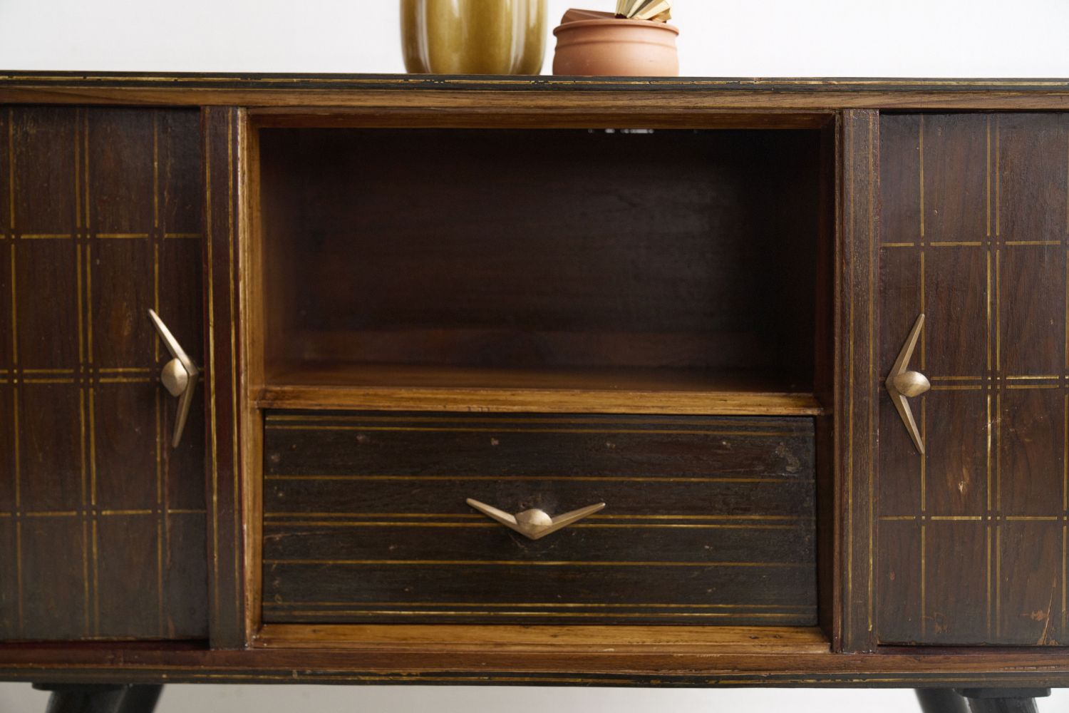 This Midcentury Console is a stunning piece of history with excellent build quality. The christian wood finish has a rich, authentic patina that speaks to its 1950s origins. At 142cm wide, it’s substantial enough to make a statement but fits well in my living room. The brass handles and gold inlay details are beautiful touches that catch the light perfectly. Storage is practical with both doors and a drawer. While pricey at $1040, the craftsmanship and unique character make it worth the investment for anyone seeking genuine vintage appeal.