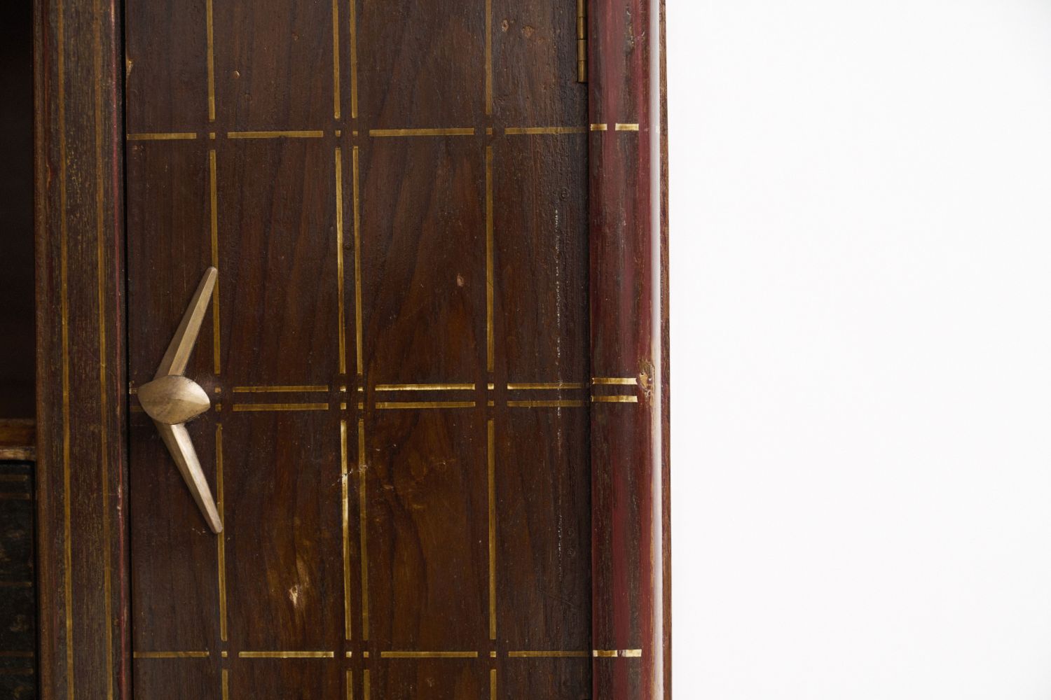 The authentic patina has been carefully retained and preserved with a sealant, ensuring the piece’s character and story will endure. Its exterior is adorned with its original geometric pattern, enriched with a gold paint inlay that catches the light beautifully.