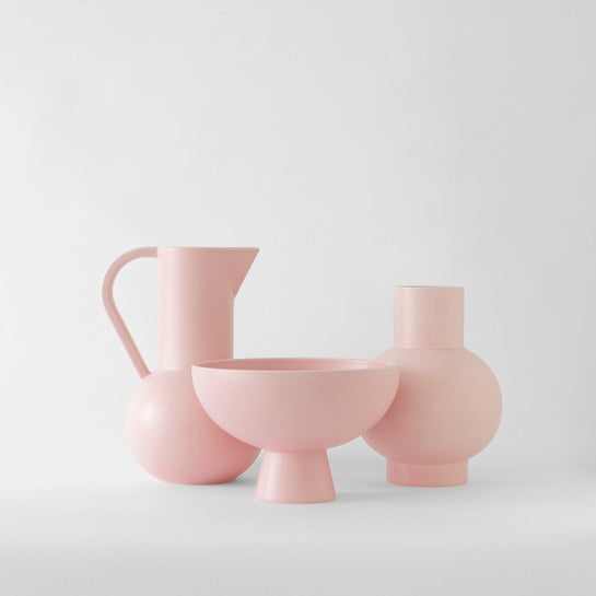 The Raawii Strom Large Jug – Coral Blush impresses with refined simplicity, a sculptural character and striking colour. It brings a vibrant edge to any dining room or kitchen it occupies, while also blending in as a functional everyday object.