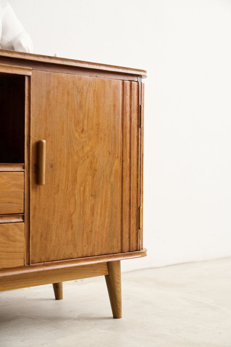 The Retro Curved Sideboard is a stunning piece that truly captures the elegance of mid-century design with Art Deco influences. The teak wood grain is rich and warm, and the fluted detailing adds a nice tactile element. At 150cm wide, it fits perfectly in my dining area without overwhelming the space. The tapered legs give it that classic retro vibe. While the price point is on the higher side, the craftsmanship and unique design make it worth the investment. Delivery was smooth, though it took a few weeks to arrive. Overall, very satisfied with this sophisticated addition to my home.
