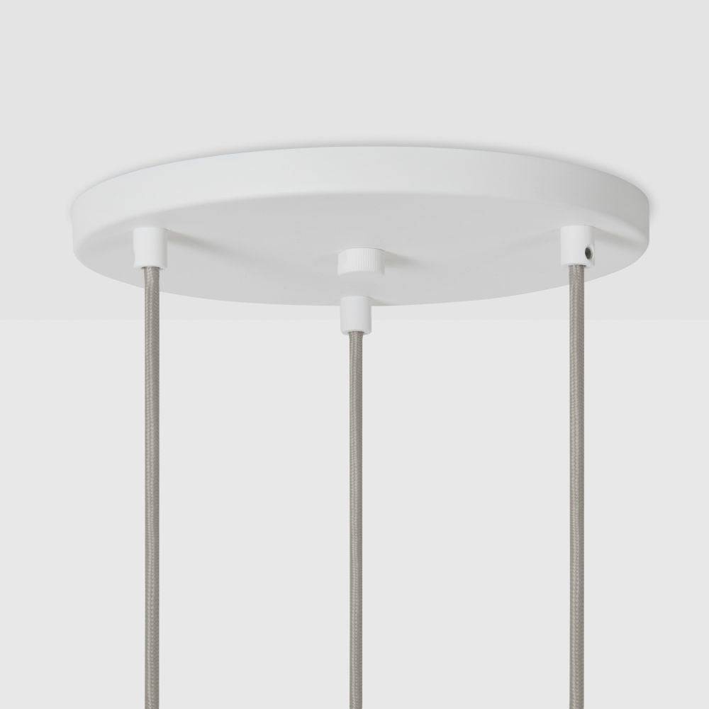 The Tala Alumina Triple Pendant with Canopy is a sleek, modern lighting solution perfect for contemporary interiors. This stylish fixture features three minimalist pendants suspended from a circular ceiling canopy, all crafted with a textured chalk-white powder-coated aluminum finish.