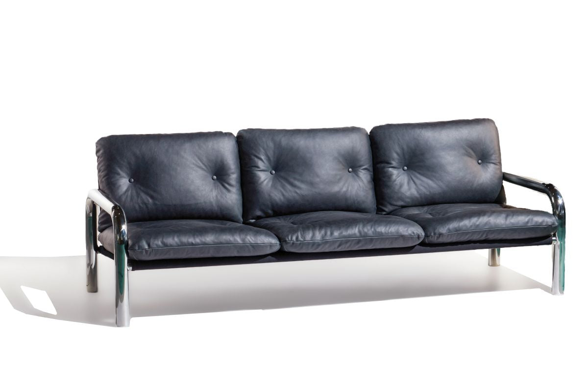 Experience timeless Bauhaus design with the United Strangers Rudolph 3-Seat Sofa, a striking statement piece that redefines contemporary seating. This modern sofa features iconic arching tubular steel armrests that extend to the floor, creating a bold silhouette that commands attention in any living space.